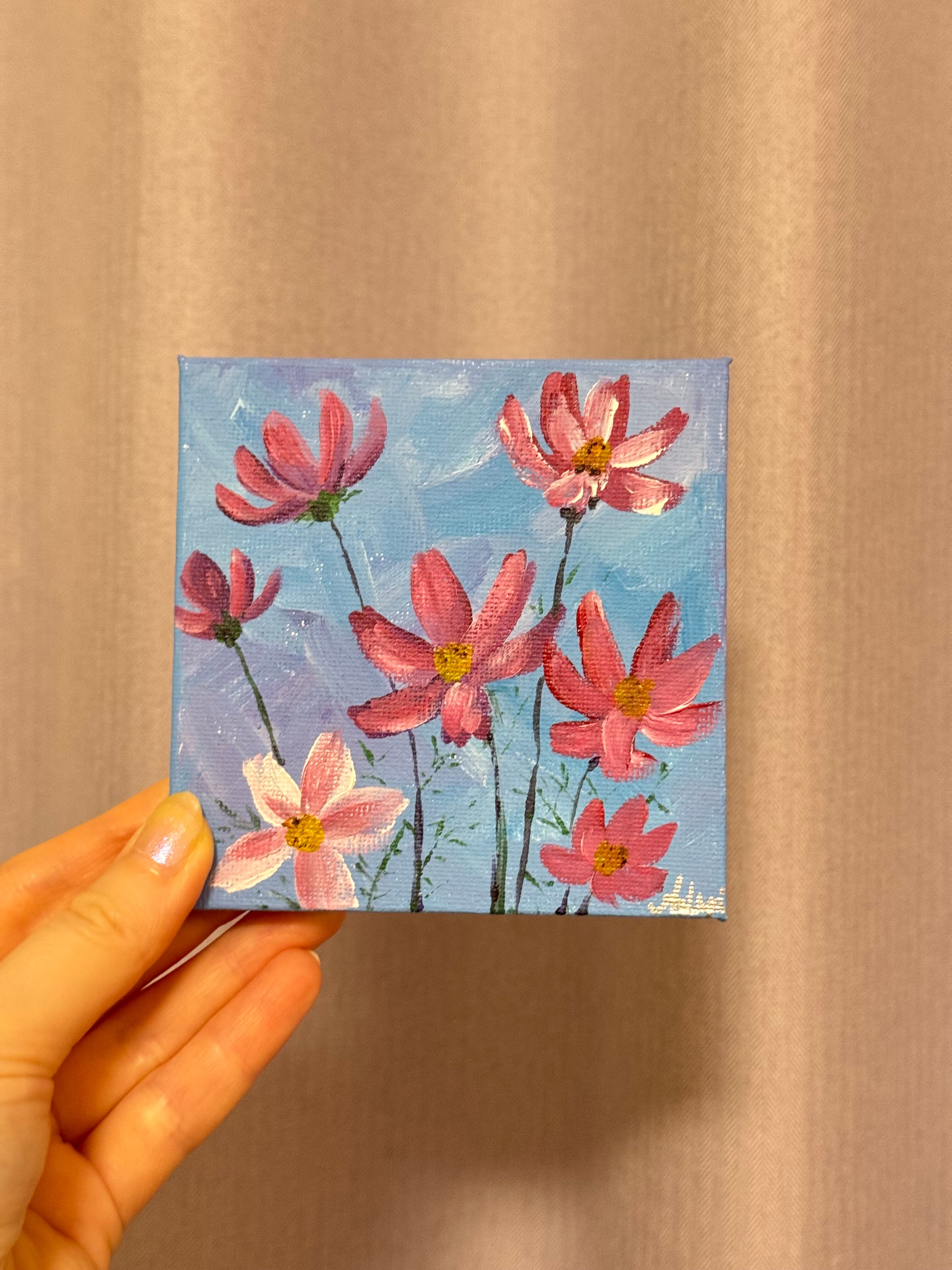 このアートは、透きとおる青空の下に咲き誇るコスモスの花。