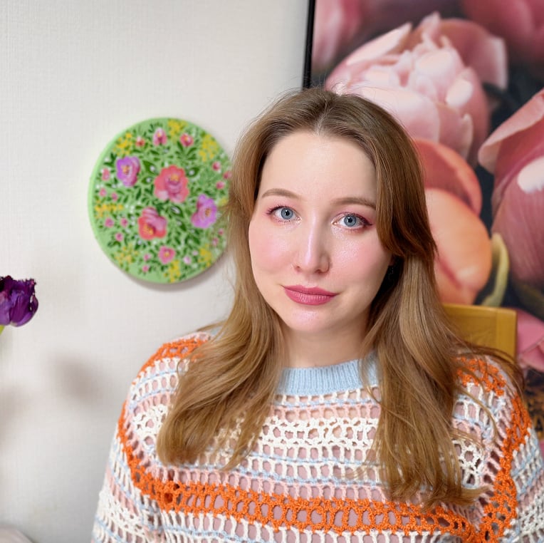ロシアの伝統装飾であるゴロデツキー(Городецкая роспись)とジョストヴォ(Жостово)の花模様に着想を得て描いた、アクリル画の装飾作品です。